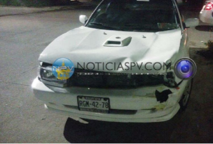 El conductor de este vehículo al ir circulando en dirección de oriente a poniente por la calle Juárez, intenta dar vuelta a su izquierda sin percatarse que atrás venia otro auto de la marca Nissan, tipo Tsuru, de color blanco con las metálicas RGM-42-88 del estado de Nayarit, conducido por un vecino de El Colomo, con el que choca y luego de perder el control va y se estrella contra la banqueta de la escuela Morelos.