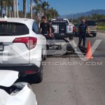 Al lugar también arribaron los agentes de la Policía Vial, así como los elementos de la Policía Estatal Preventiva, quienes fueron informados como ocurrió el accidente, manifestando testigos del lugar, que el choque había sido por alcance entre un vehículo Honda, tipo HR-V, modelo 2018, de color blanco, con placas, JPP-53-42, de Jalisco, que conducía un masculino de nombre Miguel, vecino de Marina Vallarta, mismo que se impacta contra una Motocicleta, BMW, de color negro, modelo 1996, con las placas H745P, del estado de Jalisco, conducida por Gabriel, vecino de la calle Primavera, en Nuevo Vallarta, mismo que es chocado por la parte de atrás por un tercer vehículo, siendo un automóvil Dodge, Attitude, modelo 2017, color blanco, placas JPH-90-67, que era conducido por quien dijo llamarse Miriam, con domicilio en Villa Antigua, de la colonia Los Portales, en Puerto Vallarta.