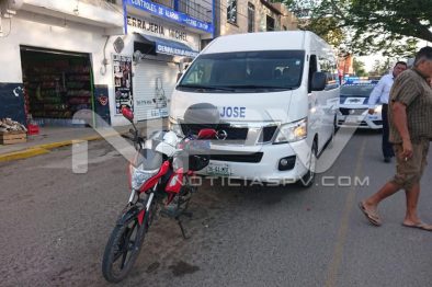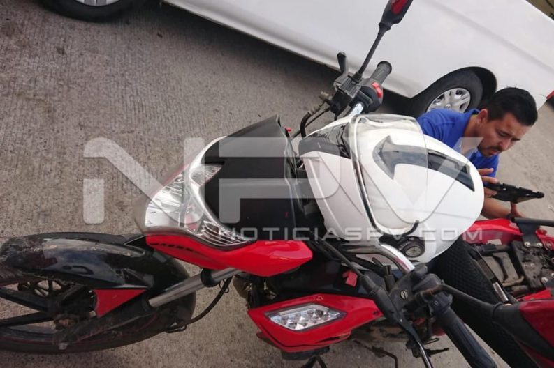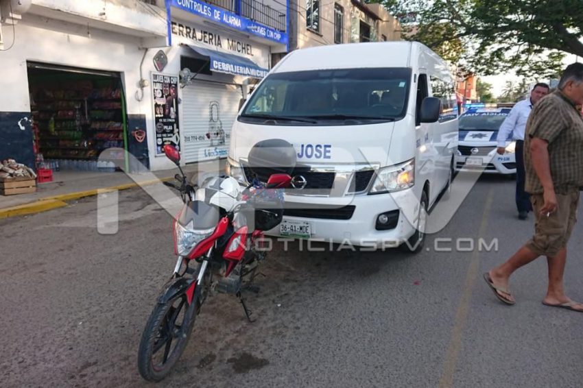 Aparatoso accidente ocurrió entre una motocicleta y un taxi colectivo en el poblado de Bucerías, Nayarit, donde afortunadamente solo se registraron daños materiales, sin víctimas que lamentar, haciéndose cargo de tomar nota los elementos de Tránsito Municipal de Bahía de Banderas.