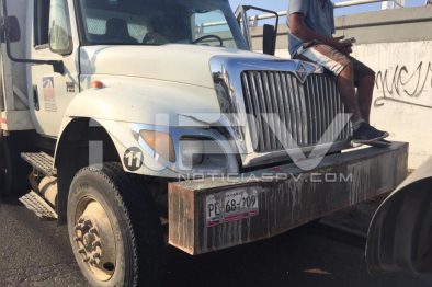 Según comentaron testigos a los agentes de la Policía Vial, que el vehiculo responsable fue uno de la marca International, de color blanco, modelo 2009, con placas de circulación. PE,-68-109, DE Nayarit, que cargaba material para la construcción y que conducía un masculino de nombre Miguel Orlando Corona, con domicilio en calle Cuahutemoc, número 8, en Valle de Banderas.