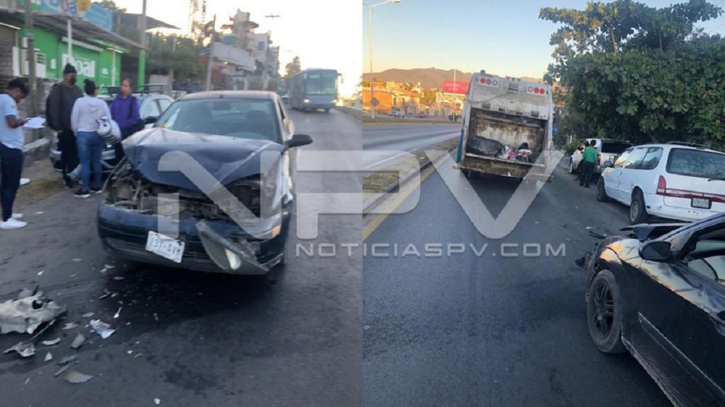 Fuerte accidente se registró sobre el boulevard Riviera Nayarit, a la altura del Arroyo del Indio en Bucerías, en donde un auto compacto se estampó en la parte trasera de un camión recolector de basura.
