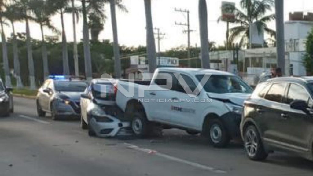 Fuerte carambola se registró sobre el boulevard Riviera Nayarit a la altura del poblado de Bucerías, en donde se vieron involucrados 4 vehículos dos de los cuales resultaron con daños considerables, pero las autoridades no reportan personas lesionadas pese a la magnitud del percance.
