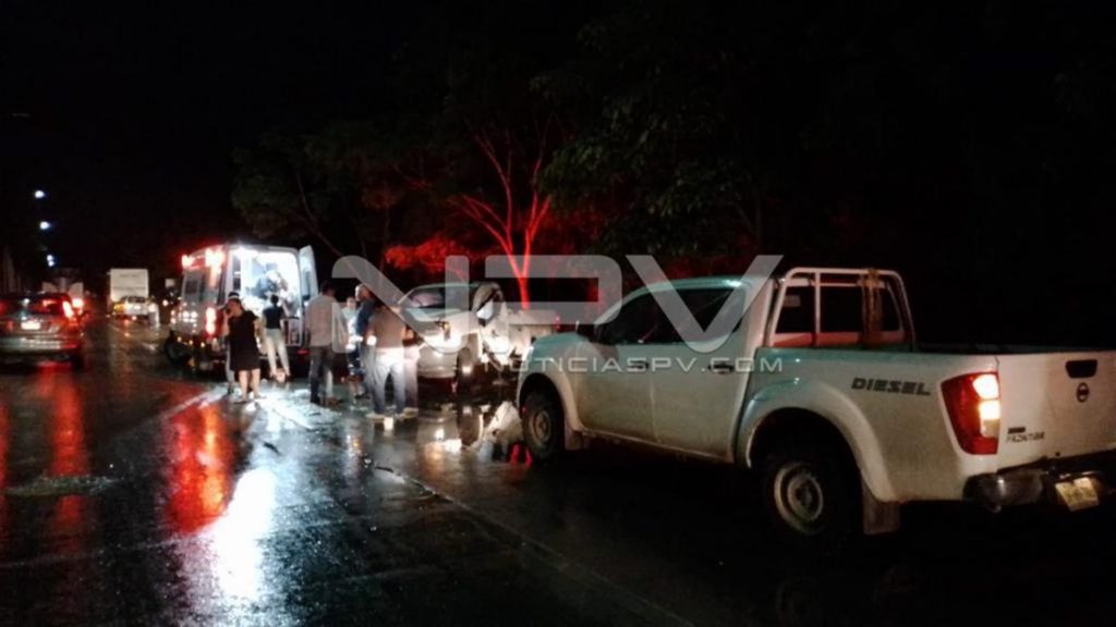 Aparatoso choque de dos camionetas de registró sobre el boulevard Riviera Nayarit en el poblado de Bucerías, en el municipio de Bahía de Banderas, en donde se vieron involucradas dos camionetas una de las cuales resultó con daños considerables.