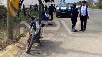 Este sábado ocurrió un accidente entre dos motocicletas que chocaron al parecer por corte de circulación donde resultaron daños materiales y dos personas con lesiones, quienes fueron revisadas por elementos de los primeros auxilios, donde tomaron nota los agentes de Tránsito y de la Policía Municipal de Bahía de Banderas.