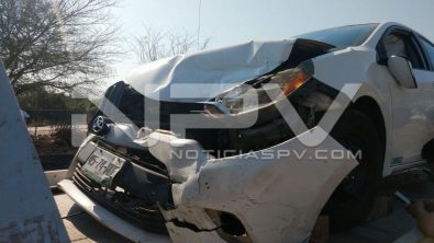 Dos vehículos de alquiler chocaron de frente, donde resultaron cuantiosos daños materiales y una persona golpeada que fue revisada por socorristas, quien afortunadamente no presenta lesiones de gravedad.