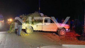 Auto termina destrozado y volcado en la autopista Las Varas–Puerto Vallarta