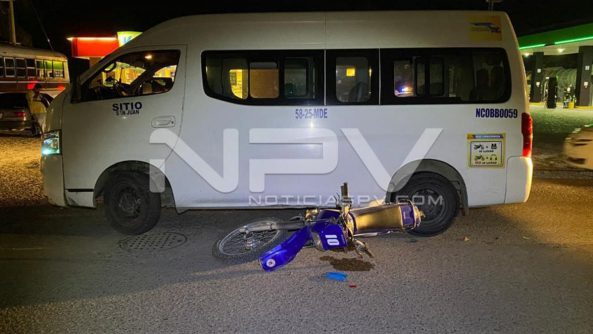 Hasta ese sitio arribaron los Policías junto con los agentes de Tránsito Municipal de Bahía de Banderas, quienes informaron a su base operativa que ahí tienen a la vista una motocicleta de la marca Suzuki todo terreno, de color azul, que está abajo de un taxi colectivo con ruta San Juan, este de la marca Nissan, NV350, tipo Urvan, de color blanco, con placas 58-25-MDE, del transporte público de Nayarit.