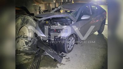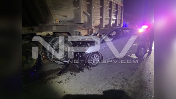 Hasta ese sitio se trasladaron los agentes de la Policía Vial, a bordo de sus unidades quienes al arribar se percataron del accidente y luego informaron que se trataba efectivamente de dos vehículos, una góndola de acarreo pétreo de la marca International y un automóvil de la marca Dodge, tipo Atiitude, que se aprecian chocados entre sí.