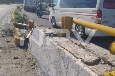 En el accidente resultaron cuantiosos daños materiales en el vehículo Tsuru que se impactó contra el muro de contención, dañando también la base tubular del mismo