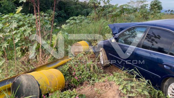 Conductor perdió el control del vehículo que conducía y chocó contra el muro de contención que colocó personal de vialidad en el puente «Coastecomate» quien logró salvar su vida, aunque el auto sufrió serías averías el cual fue llevado al corralón.