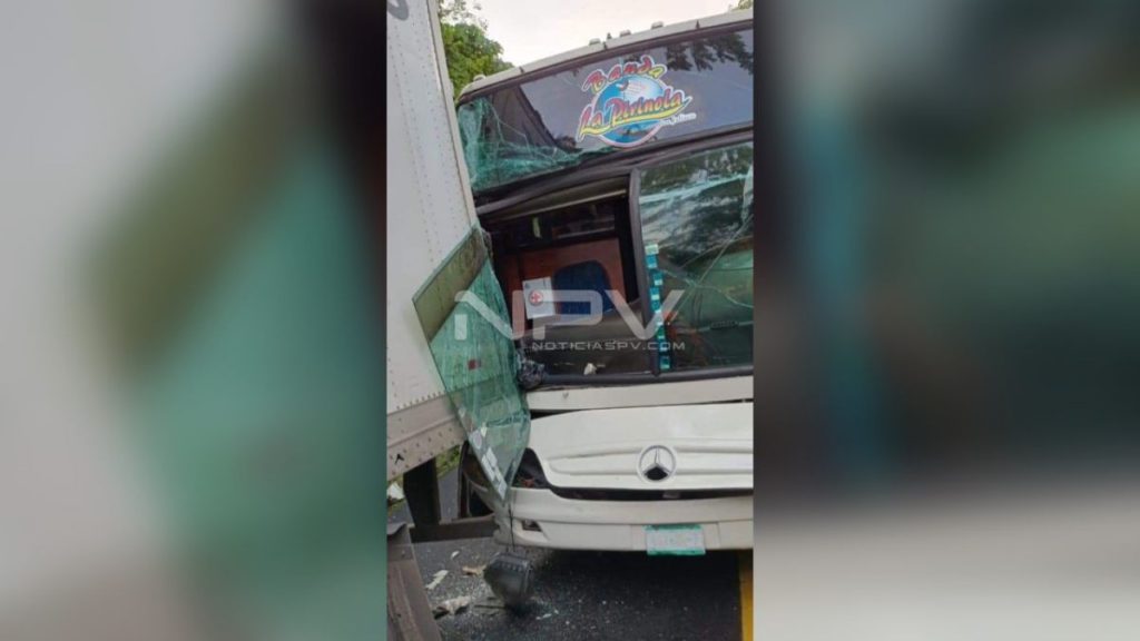 Se dieron cuenta de que se trata de un choque entre un autobús de la banda La Pirinola, la cual chocó por alcance contra un camión de fletes, resultando ambos con daños considerables.