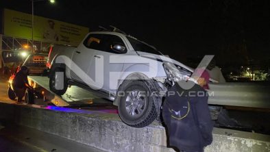 Hasta ese sitio arribaron los elementos de la Policía Vial, quienes informaron a su base operativa que ahí tienen a la vista una camioneta que está impactada contra el muro de contención, sin que se tenga a la vista personas lesionadas.