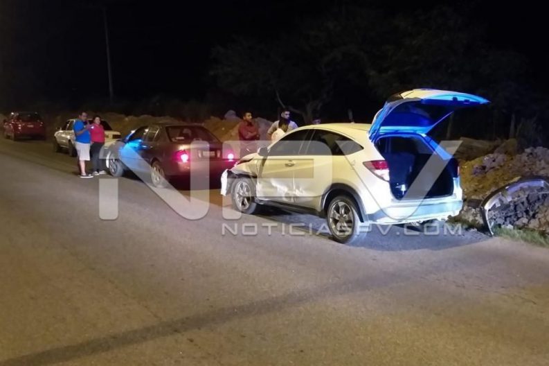Aparatoso accidente se registró entre dos vehículos en el tramo de San Vicente a Mezcales, sobre la avenida Emilio M. González, en el municipio de Bahía de Banderas, donde resultaron cuantiosos daños materiales, afortunadamente sin personas lesionadas, haciéndose cargo de tomar nota los agentes de la Policía Vial.