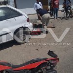 Al lugar se dirigieron los oficiales de Tránsito Municipal a bordo de sus unidades radio patrullas al mando del comandante Elías Percastre, quienes al arribar se percatan del accidente y luego informan a su base operativa que se trata efectivamente de un choque entre dos vehículos, siendo como presunto responsable un motociclista que se impactó contra un auto estacionado