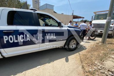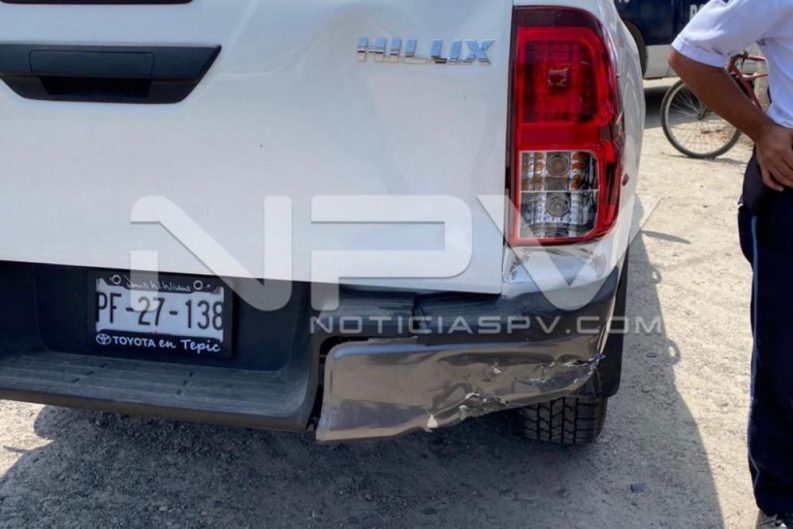 Motociclista chocó por alcance contra una camioneta al circular a exceso de velocidad, por la carretera a Mezcales, donde afortunadamente sólo resultaron daños materiales, sin víctimas que lamentar.