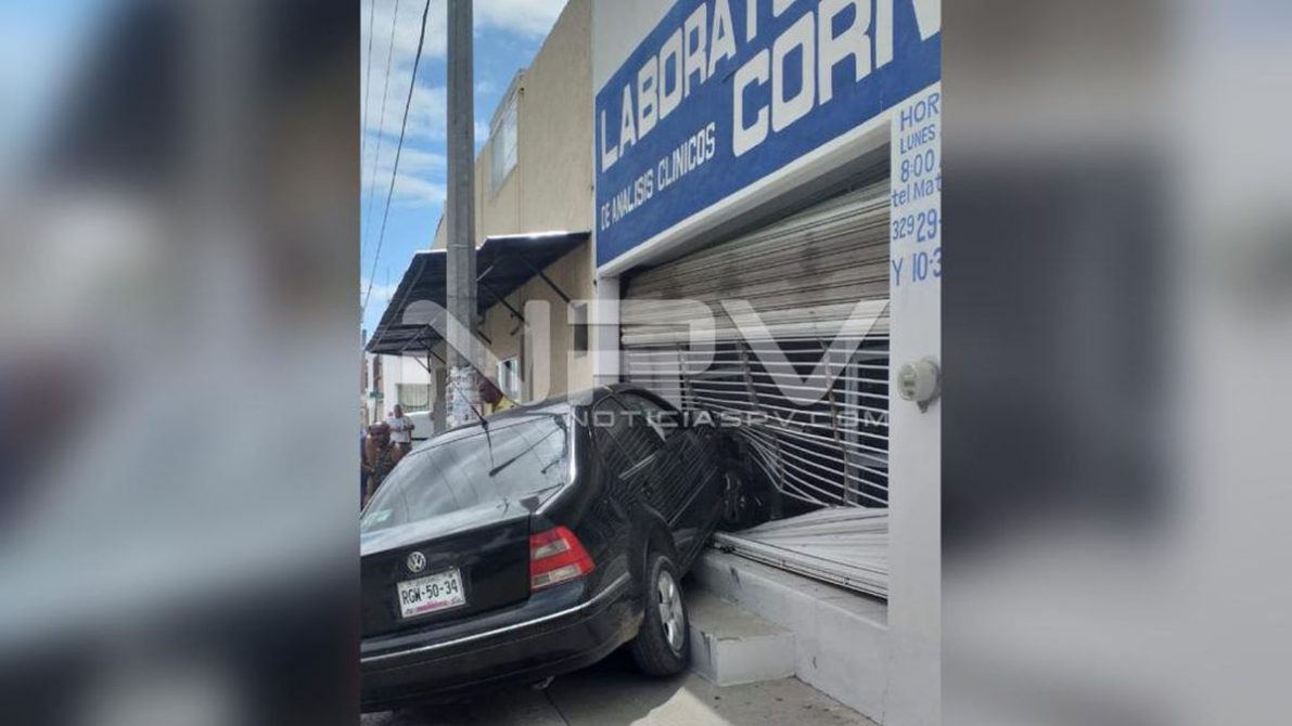 Dio a conocer el comandante en turno de los agentes viales, que se trata de un vehículo VW, tipo Jetta, de color negro, modelo 2005, con placas de circulación RGW-50-34 del estado de Nayarit, que era conducido momentos antes por un masculino de nombre Rafael Montalvo, con domicilio en Valle Dorado, quien al ir circulando por la avenida Valle de México, pierde el control y se impacta contra la cortina de un laboratorio de Análisis Clínicos.