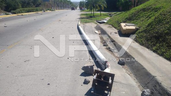 También tumbó un poste y unos señalamientos *Las autoridades no reportan lesionados en este accidente registrado cerca del crucero a la Cruz de Huanacaxtle