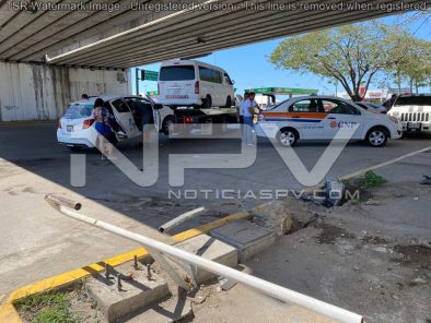 entre un taxi colectivo y un vehículo particular, esto a la altura del puente Marlin, donde al parecer el accidente se originó debido a que ninguno de los conductores respetó la luz del semáforo y terminaron chocando entre sí.