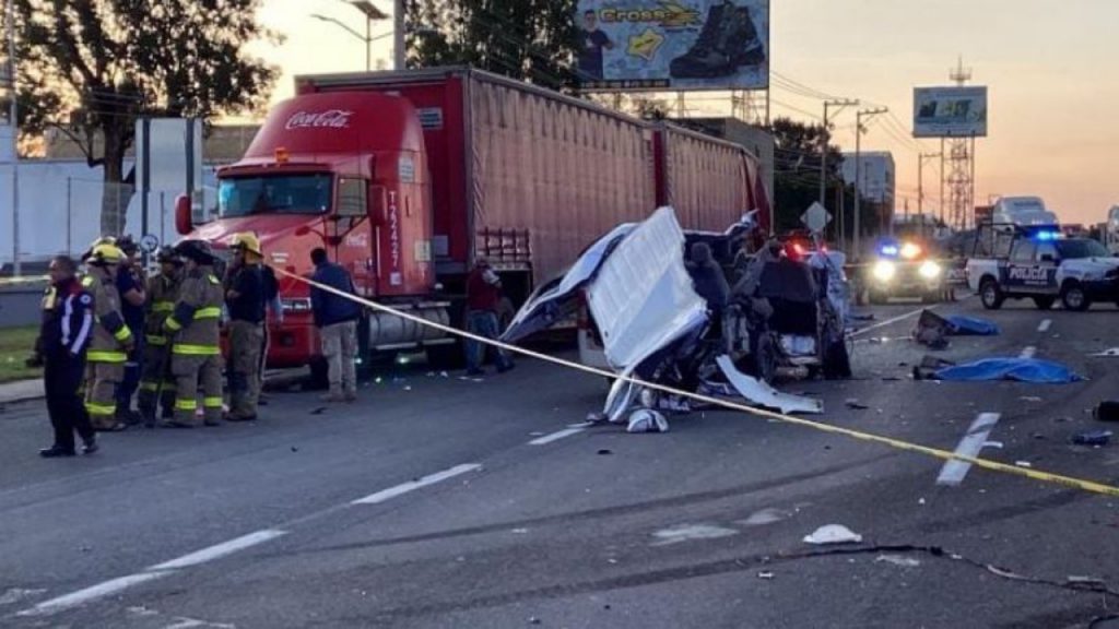 GUANAJUATO, Gto. (apro).- El choque de un tráiler de doble remolque de una empresa refresquera contra una camioneta urban en la autopista Irapuato-León causó la muerte de siete trabajadores que viajaban en esta última unidad y se dirigían a laborar a una empresa, así como 12 heridos.