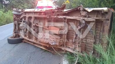 Asimismo, volcada sobre la carretera y obstruyendo uno de los carriles, quedó una camioneta marca Nissan, en color blanco, con placas del estado de Nayarit, la cual presentaba daños en la parte del lado izquierdo y en la parte trasera, puesto que el eje trasero le fue arrancado.