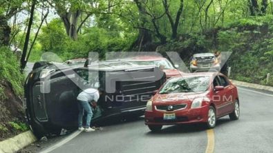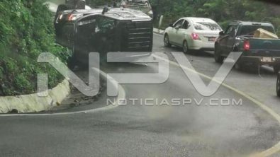 Aparatoso choque y volcadura se registró la tarde de este lunes sobre la carretera federal 200, a la altura del kilómetro 61, poco antes de llegar al poblado de Mesillas, en el municipio de Compostela, Nayarit.