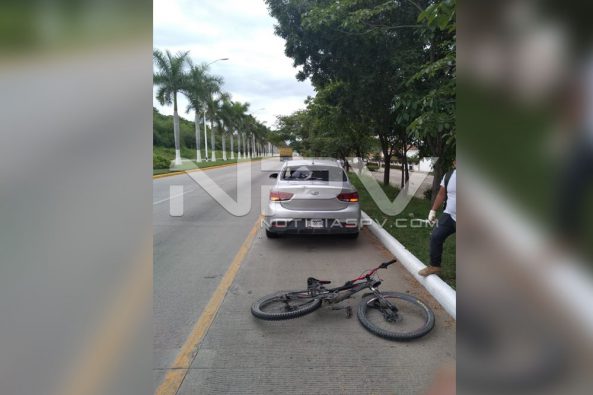 El conductor de la bicicleta resultó lesionado tras impactarse contra un vehículo Kia que circulaba por el Boulevard Riviera Nayarit