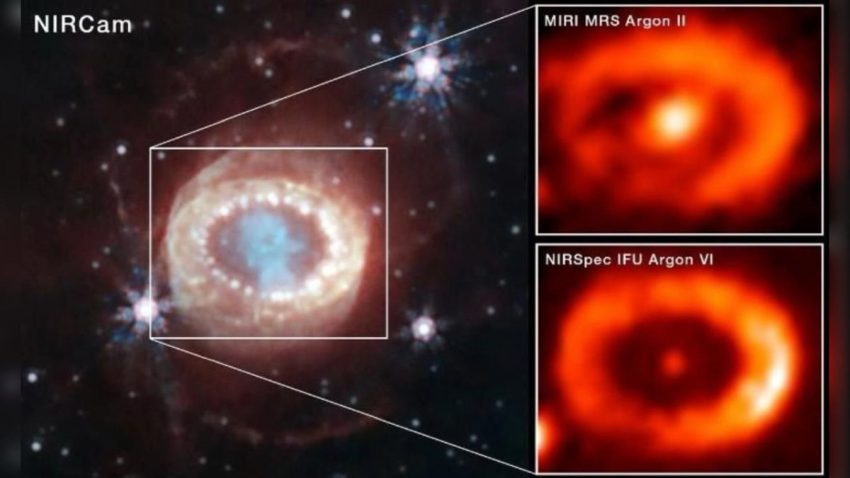 Dos instrumentos del Telescopio Espacial James Webb (JWST) que observaron la supernova en longitudes de onda infrarrojas detectaron evidencia química reveladora que involucra átomos de argón y azufre, lo que indica que una estrella de neutrones recién nacida está envuelta detrás de los escombros que quedaron de la explosión, dijeron investigadores el jueves.