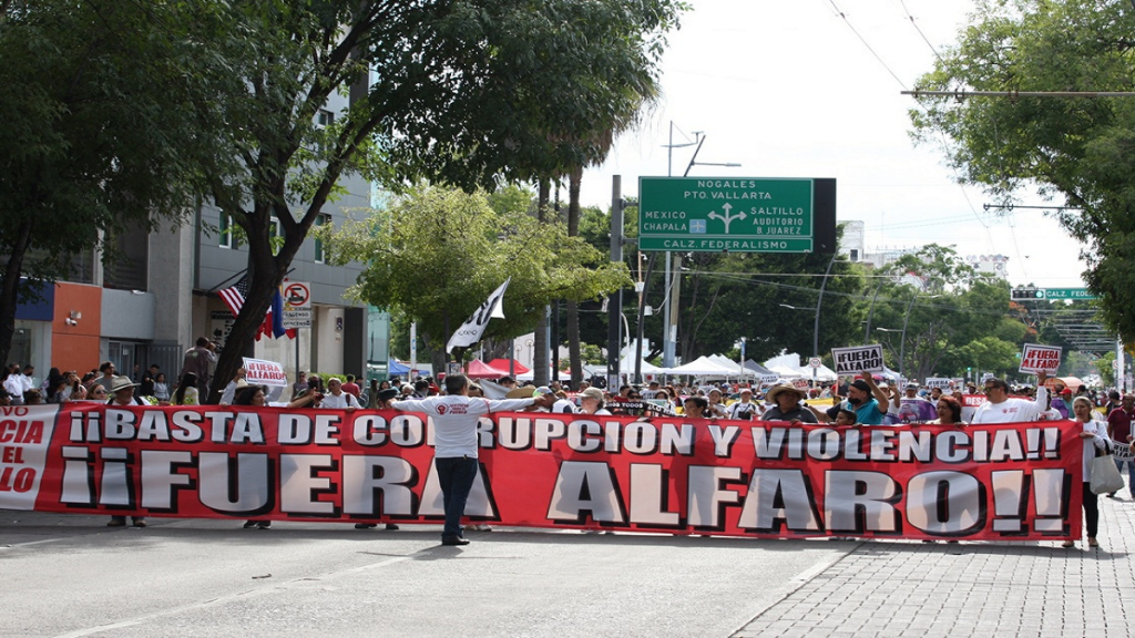 Guadalajara, Jal. Integrantes de por lo menos 23 colectivos marcharon la tarde de ayer por las calles del centro de Guadalajara para repudiar la administración del gobernador jalisciense Enrique Alfaro Ramírez, del partido Movimiento Ciudadano.
