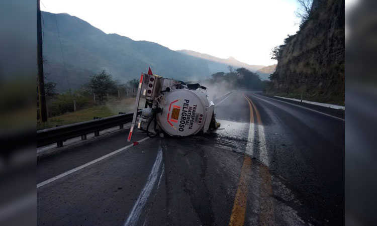 También la mañana de este viernes se registró la volcadura de una pipa sobre la autopista Córdoba-Puebla, que ocasionó una fuga de químicos, por lo que autoridades de Protección Civil llamaron a evitar la zona.