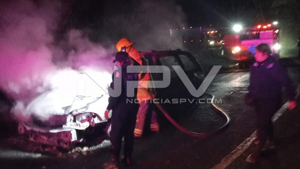 Elementos de la unidad municipal de Protección Civil y Bomberos de Compostela, atendieron un incendio en un vehículo que se registró sobre la carretera federal 200 a la altura del kilómetro 53.