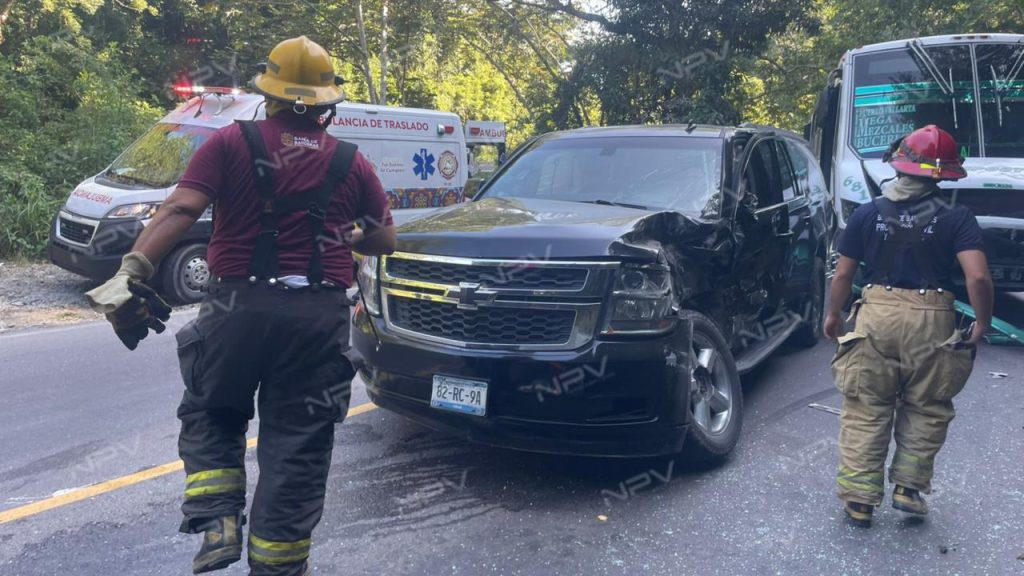 Las autoridades reportan al menos cinco lesionados. Se trató de un choque entre un camión de Compostela y una camioneta de turismo