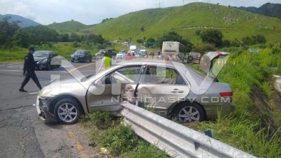 Y es que el vehículo circulaba sobre la carretera cuando fue impactado presuntamente por una camioneta marca Chevrolet, Van en color café, la cual además del impacto lo proyectó contra las barras metálicas de protección, resultando de este modo lesionada una de las cuatro personas que viajaban este auto