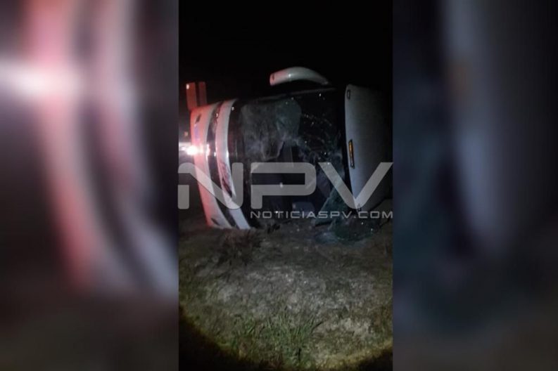 Lamentable accidente se registró la noche de este jueves entre los municipios de Compostela y Jala, en donde un camión de pasajeros de la línea Futura, se salió de la carretera y volcó.