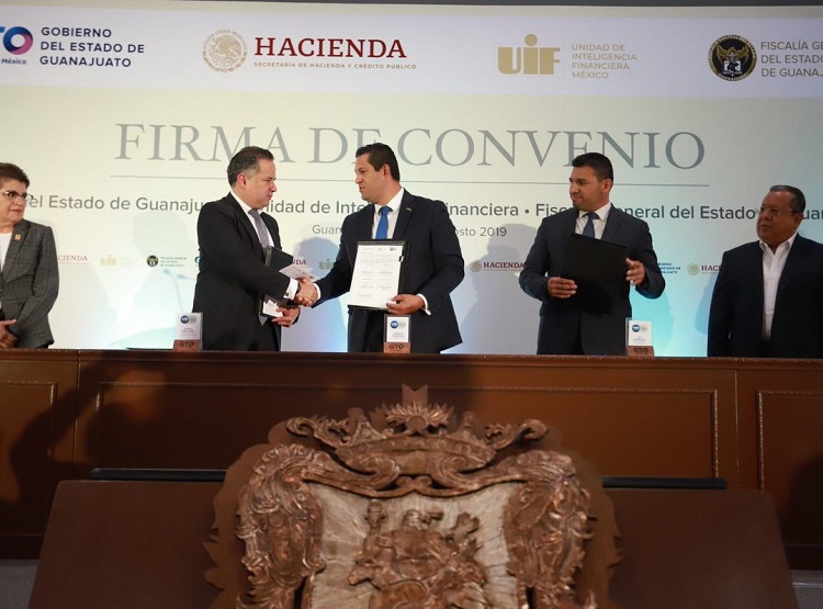 El titular de la Unidad de Inteligencia Financiera del gobierno federal estuvo en Guanajuato para firmar el convenio de colaboración con la recién creada Unidad de inteligencia en materia económica del gobierno del estado para el intercambio de información con la instancia federal, y habló sobre los avances en el desmantelamiento financiero del Cártel de Santa Rosa de Lima.