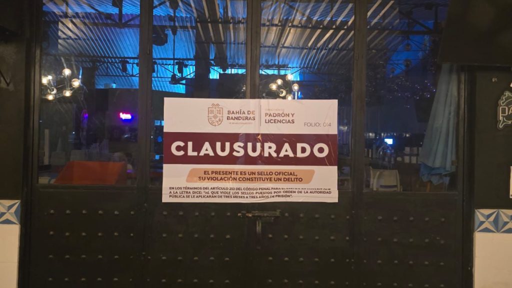 El Gobierno de Bahía de Banderas informa que, como parte de las acciones para garantizar el cumplimiento de la normativa municipal, se procedió a la clausura del bar The Drunken Duck Cantina, ubicado en Nuevo Nayarit, debido a que operaba fuera del horario permitido en el reglamento de funcionamiento y venta de bebidas alcohólicas.