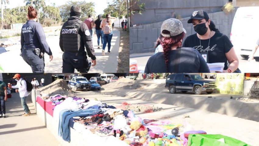 Bahía de Banderas, Nayarit, 10 de enero de 2022.- Clausura la Dirección de Padrón y Licencias puestos dentro del tianguis de Bucerías, en El Arroyo del Indio, que corresponden a giros no esenciales.
