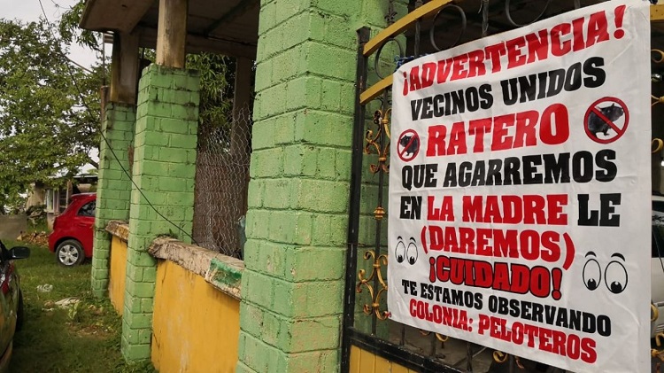 En las colonias más pobres de la ciudad es común ver mantas que advierten a los delincuentes la suerte que correrán en caso de que sean atrapados, pues la comunidad promete hacer justicia por su propia mano.