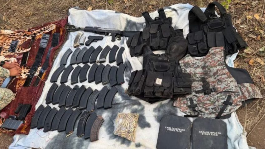 Asimismo, en el lugar se aseguraron armas largas y cortas, cartuchos, drogas y equipo táctico, informaron autoridades de la Mesa de Coordinación Estatal para la Construcción de Paz y Seguridad.