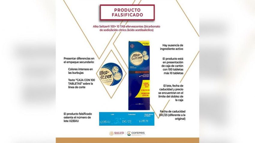 Cuatro medicamentos falsificados fueron identificados por la Comisión Federal para la Protección contra Riesgos Sanitarios (Cofepris), entre ellos Alka Seltzer, Sedalmerck, Pentrexyl y Broncho-Vaxom.