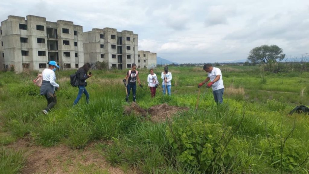 “Seguimos la búsqueda y vamos a estar toda la semana… ayer encontramos tres fosas en tres casas aquí en Villa Fontana Aqua, etapa seis, encontramos tres fincas con cuerpos y a petición de las familias que viven en este lugar volvimos a venir y ahorita ya encontramos una, el día de hoy acabamos de encontrar otra”.