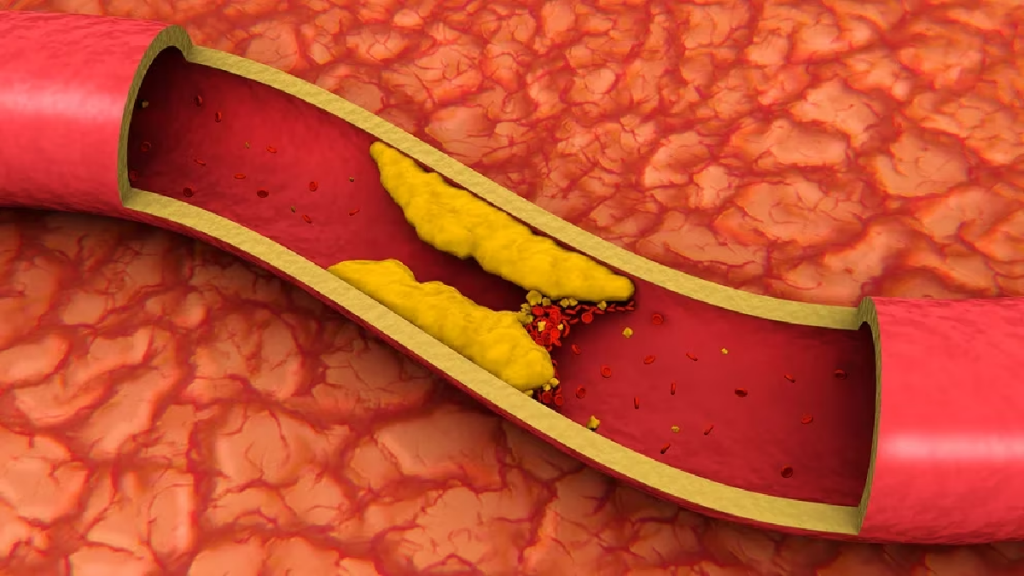 El colesterol alto en la sangre puede acumularse en las paredes de las arterias y formar placas, lo que obstaculiza el flujo de sangre y aumenta el riesgo de enfermedades cardíacas y derrames cerebrales
