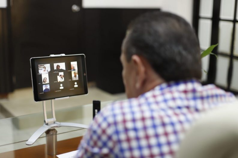 El presidente municipal de Bahía de Banderas, doctor Jaime Cuevas Tello, sostuvo una reunión virtual con representantes de los giros comerciales que han estado reactivándose en nuestro Municipio, con la finalidad de reforzar las medidas sanitarias y protocolos de prevención para evitar contagios por COVID-19.