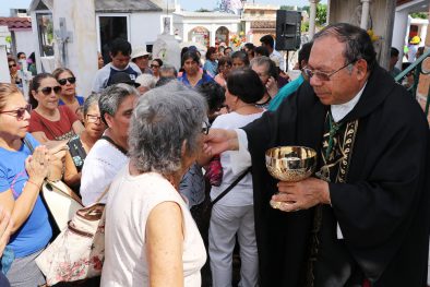 El presidente municipal, Arturo Dávalos Peña y su familia, compartieron la tradición del Día de Muertos con los miles de vallartenses que se dieron cita desde temprana hora en el panteón 5 de Diciembre, para visitar a sus fieles difuntos, además de participar en la misa que ofició el Obispo de la Diócesis de Tepic, Monseñor Luis Artemio Flores Calzada.