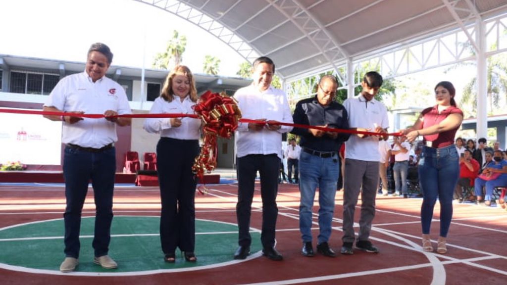 Se trata de un espacio multifuncional, pues cuenta con canchas de fútbol rápido, básquetbol y voleibol. El alumno Bruno Fernando Ortiz Fuentes, agradeció la generosidad de la autoridad porque “demuestra su compromiso con la educación, pues aporta una gran cantidad de beneficios, se realizarán eventos de nuestra escuela y otros abiertos a la comunidad. Aprovecharemos al máximo el apoyo que nos brindan”.