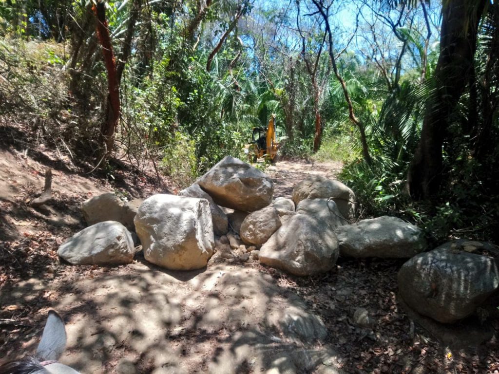 · Al cerrar este único acceso de esta playa de Sayulita, prácticamente queda privatizada, según el reporte ciudadano. Propietarios de estos predios con cadena primero cerraron el camino antiguo que conectaba con Compostela para evitar entraran vehículos y ahora con piedras para que ni caminando se visite más esta playa virgen todavía. En este lugar se llevó a cabo un evento masivo el año pasado.