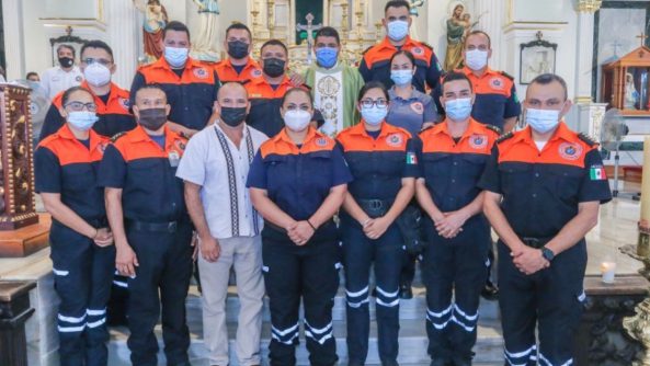 La ceremonia religiosa tuvo lugar en la Parroquia de Guadalupe, a la que asistió un grupo elementos de Protección Civil y Bomberos, encabezados por el titular de la dependencia Adrián Bobadilla García, quienes por razones preventivas y sanitarias representaron a toda la corporación,