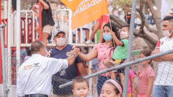 Frente a vecinos reunidos en la cancha de usos múltiples de esa colonia, acompañado de la candidata a la alcaldía, Lupita Guerrero, Dávalos Peña enfatizó que, de acuerdo a las empresas encuestadoras más reconocidas, “Movimiento Ciudadano va en primer lugar y ¡vamos a ganar!”, por eso está seguro de que habrá continuidad en el desarrollo de la infraestructura del municipio, que en el caso de ese sector se ha plasmado en la rehabilitación de numerosas vialidades, las cuales interconectan a diversas colonias.