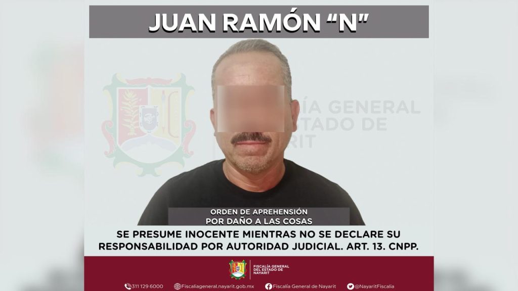La Fiscalía General del Estado, a través de la Agencia de Investigación Criminal, ejecutó una orden de aprehensión en contra de Juan Ramón “N”, actual síndico municipal de Tecuala, por su probable responsabilidad en el delito de daño a las cosas.