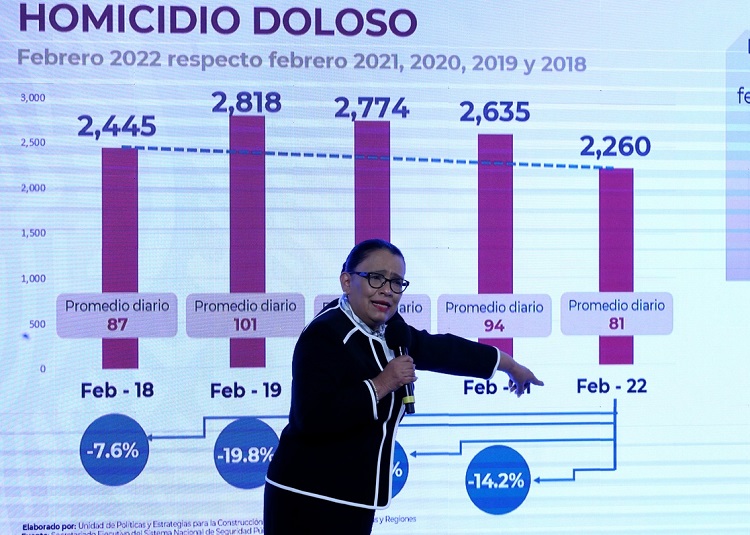 La estrategia nacional de seguridad funciona, es la correcta y está ayudando a pacificar el país”, sostuvo la secretaria de Seguridad y Protección Ciudadana, Rosa Icela Rodríguez, al presentar el reporte mensual de incidencia delictiva.
