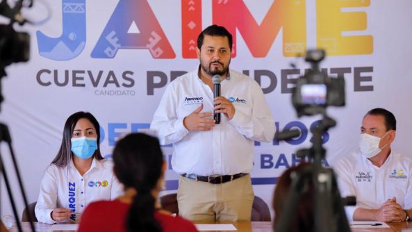“Con la incertidumbre que existe en MORENA respecto a que en las boletas vendrá el nombre de una candidata y se votará por otra nos da aún mayor margen, estamos hablando de que al final de la campaña, a una semana de que suceda, el doctor Jaime Cuevas concluirá al menos con 14 puntos arriba de su más cercano competidor”, remarcó Armando Tejeda.